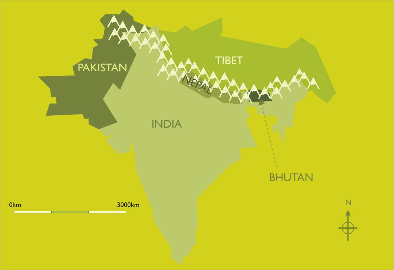 Thuộc khu vực dãy Himalaya, Bhutan là một đất nước nhỏ xíu xiu, cùng với Tây Tạng và Nepal là những vùng đất bị kẹp giữa hai ông kẹ Trung Quốc và Ấn Độ. Bên cạnh Tây Tạng với số phận long đong giờ đã thành một phần của Trung Quốc và Nepal với một nền địa chất hết sức mong manh phải gồng mình gánh chịu nhiều thảm họa động đất, Bhutan hiền hòa tồn tại và bằng cách kỳ diệu nào đó tìm được cho mình sự bình yên ngay ở rìa bão giông.