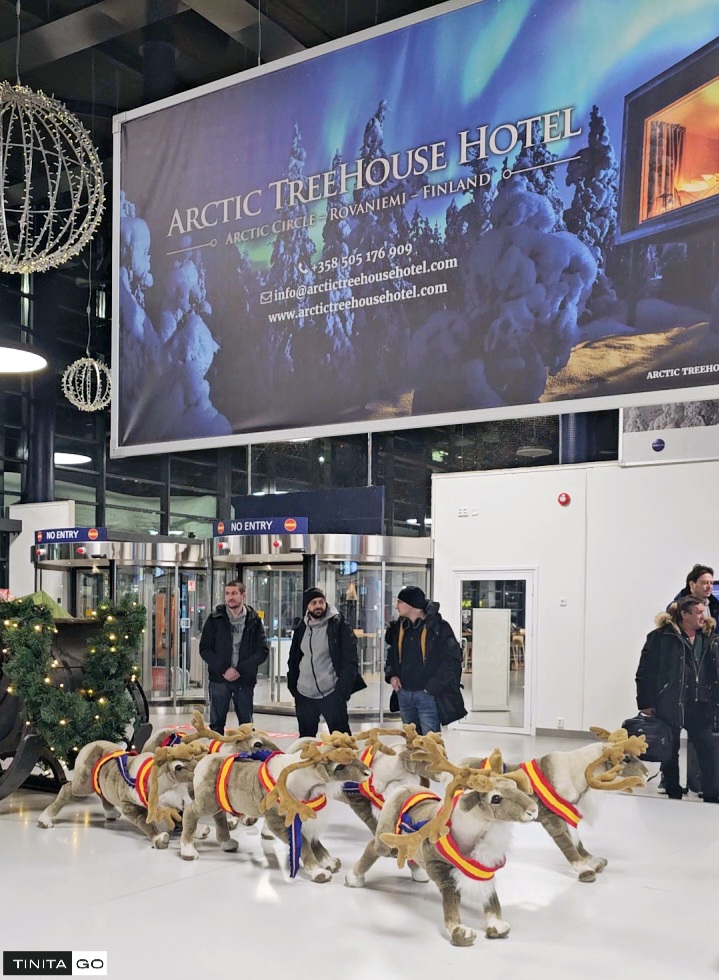 Sân bay Rovaniemi, hình ảnh về những chú tuần lộc và quảng cáo du lịch vòng cực bắc ở khắp nơi.