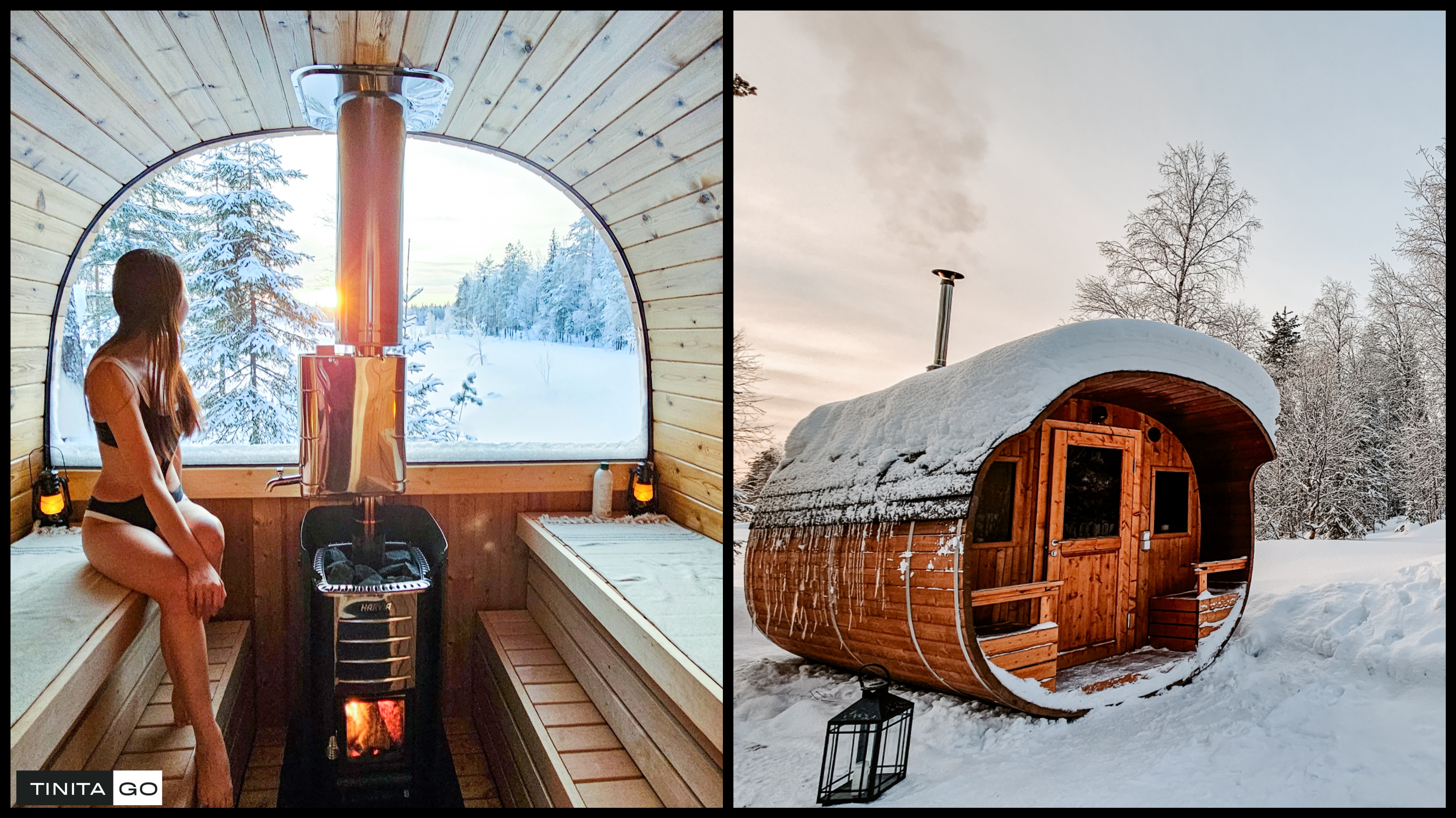 - Phòng sauna dùng củi gỗ và đá nóng, khi muốn tạo hơi nước thì đổ nước lên đá nóng, nước có thể hòa tinh dầu khuynh diệp hoặc nhựa thông cho thơm lừng cả phòng lên. Ngồi trong buồng sauna nhìn ra cửa kính, thấy bên ngoài mặt trời đang lặn dần sau những rặng cây phủ đầy tuyết, cảm giác giống như mình đang ở trong truyện cổ tích.