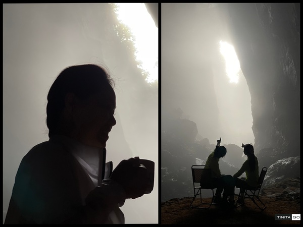 Bên ngoài hang đủ ánh sáng, chụp gì cũng đẹp thì không nói làm gì nhưng đặt chân vào trong hang là bóng tối bít bùng, ánh sáng duy nhất là từ đèn đội đầu, thỉnh thoảng ở những điểm check-in point thì mới có thêm đèn công suất lớn để đoàn thấy được toàn cảnh sự hùng vĩ của hang. Một số điểm gần cửa hang hoặc miệng hố sụt thì tận dụng được thêm chút ánh sáng tự nhiên nhưng nói chung là vẫn thiếu sáng.