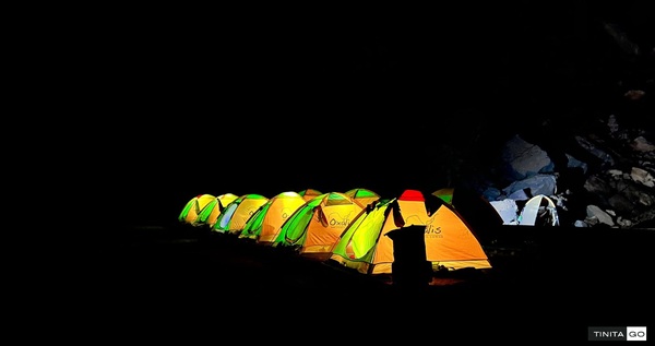 Tất cả mọi người bật đèn, treo vào trong lều rồi ra ngoài để chụp ảnh nàooo